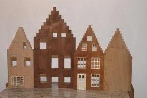 The stepped gables were in different hardwoods and to add some degree of realism each gable would have different numbers and arrangement of windows.
