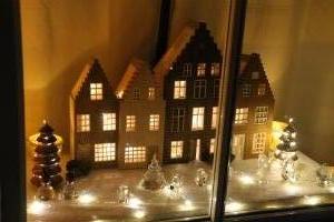 Sheila then arranged the collection of glass figures in front of the houses, along with a few small fir cones and some additional lighting.