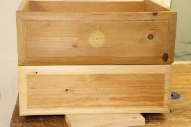 I met a young couple in a village close to the workshop and was presented with two small drawers. One had a raised central panel, the face of the other was roughly sanded flat.
