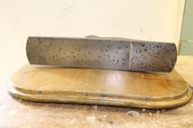 When I first looked at the original board it appeared that with a good sanding and refinishing it could be reused, but on closer examination it was obvious that the board had been wet repeatedly and was very badly warped. In discussion with the client we agreed that I would make a replacement from some staved Beech worktop, although thicker than the original the client did not consider this to be an issue.