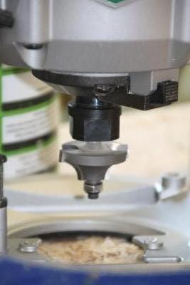 The next issue was the router cutter. The one selected was a large diameter, but the collet on my small router did not allow the cutter shaft sufficient support so I brought out the big guns. A much more powerful Hitachi machine which has a much longer shaft.