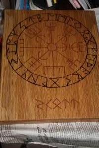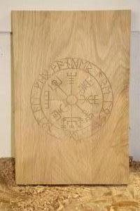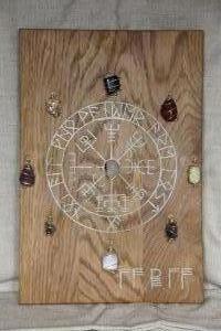 I suggested that it would be lovely to produce a unique wedding gift related to the couples beliefs. The Vegvisir (viking compass) I had made previously for another commission, was to be the central feature, surrounded by a runic inscription, crystals and the date of the wedding.